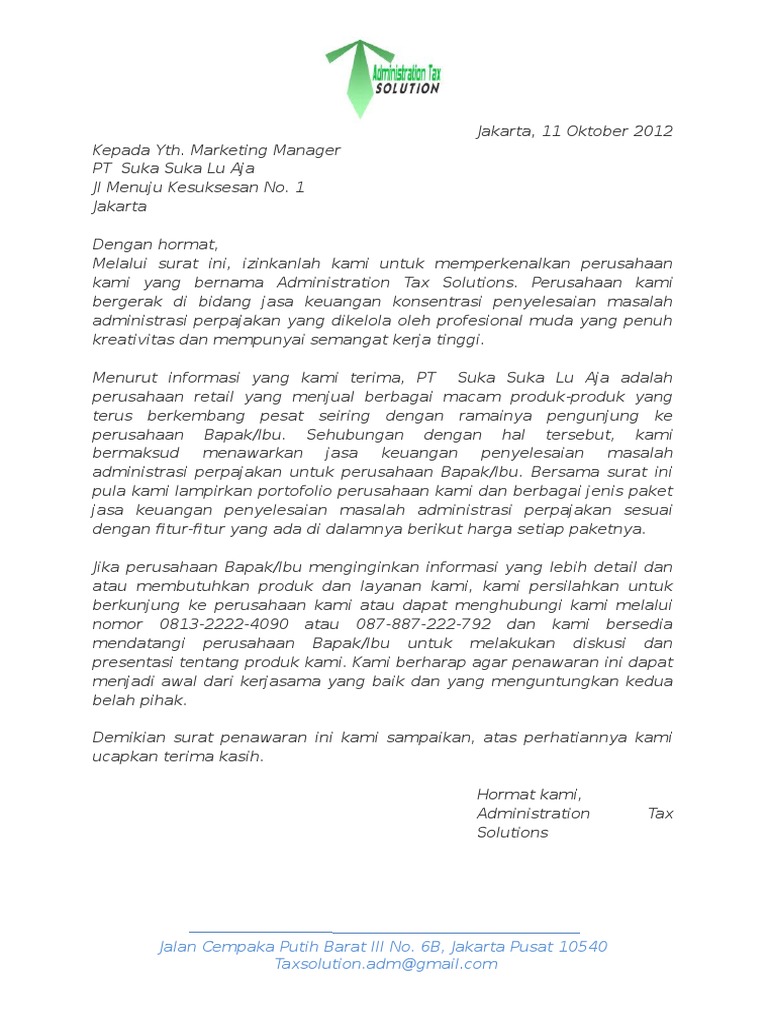 Surat penawaran jasa merupakan surat usaha yang dikeluarkan bersamaan dengan penawaran satu produk jasa pembaca pada calon konsumen potensial. Beberapa contoh surat penawaran barang dan jasa yang sudah banyak di internet dapat anda jadikan referensi ketika membuatnya. Arina consulting group konsultan akuntansi dan bisnis ukm ruko tangcit, jl. Dalam dunia bisnis, penawaran jasa memang sering dilakukan untuk menunjang perkembangan dari perusahaan itu sendiri. Contoh surat penawaran jasa konsultan.